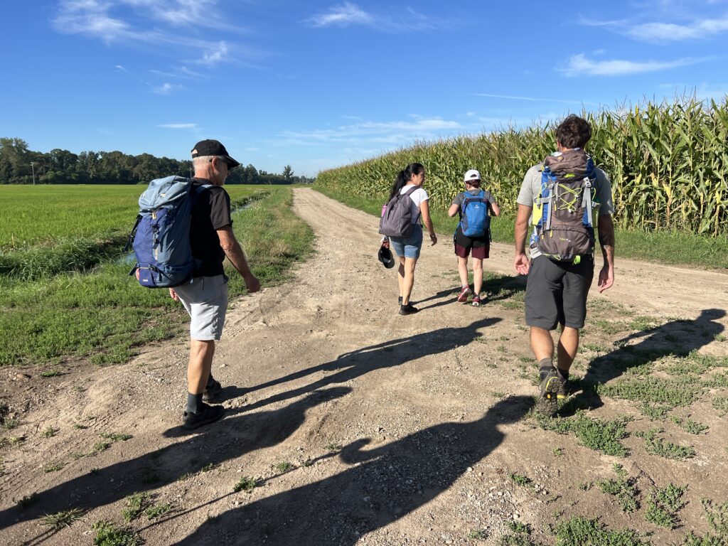 Due giorni tra risaie, mais, castelli e abbazie, ma soprattutto un record: il cammino più a ovest per Lombardia Coop to Coop. Sabato mattina Adelchi, Ester, Giovanna, Wilma, Fabrizio, Gianni, Emanuela accompagnati da Neven e Marco hanno sfidato la pioggia, prendendone poi in abbondanza nelle campagne di fianco al Ticino.